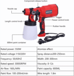 The CX‑31 Electric Spray Gun – 550W HVLP Paint Sprayer is a powerful and versatile tool designed for both professionals and DIY enthusiasts. Whether painting walls, furniture, doors, cabinets, or vehicles, this HVLP (High Volume Low Pressure) sprayer ensures smooth, even coverage with minimal overspray.